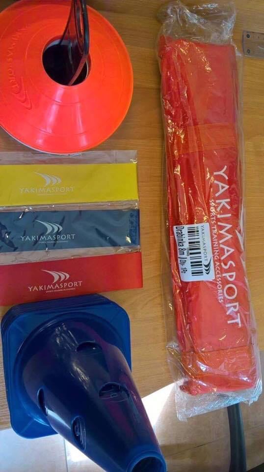 – Tablica taktyczna, Bidony, plotki samowstajace, Gumy, Pasy Spadochrony Tyczki Rebound-y Bramki.