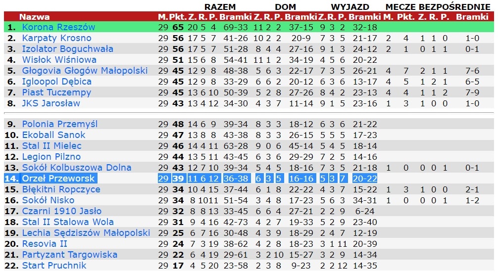 Orzeł: Kurosz – Broda, Salwach, Lech, Flis, Dec (90+2 Pieczek), Obłoza ż, Boratyn (90+1 Szewczyk), Wilk, Czyrny (79 Bogacz), Bednarz. Trener Paweł Załoga.