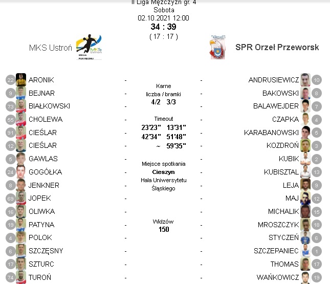 MKS Ustroń – Orzeł Przeworsk 34:39 [17:17]