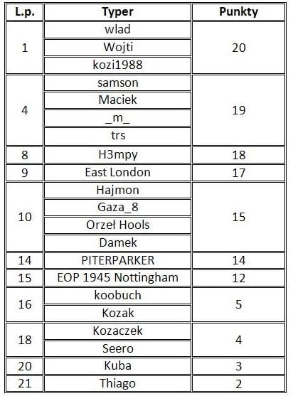 Liga Typerów – wyniki kolejki nr 5