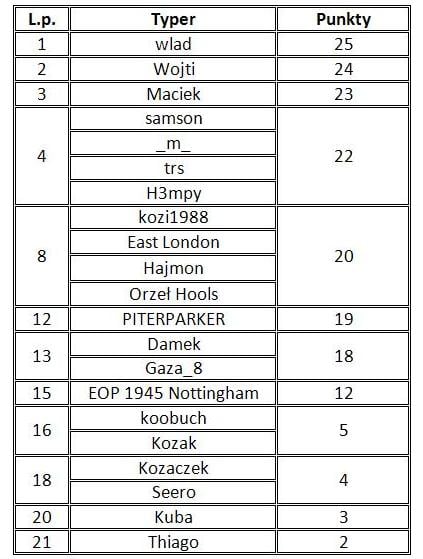 Przedstawiamy wyniki kolejki nr 6 w Lidze Typerów.