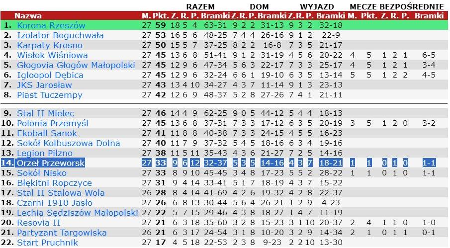 Orzeł: Kurosz – Najsarek, Salwach, Lech, Broda – eastyl Wilk (87 Szewczyk), Obłoza, Flis, Dec (90 Pieczek) – Boratyn (77 Czyrny), Bednarz (88 Bogacz). Trener Paweł Załoga.