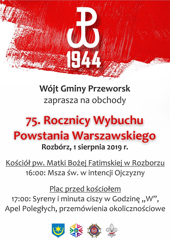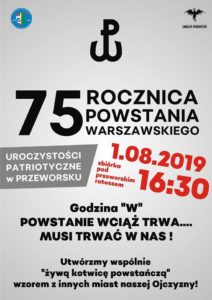 1 sierpnia 2019 przypada już 75 rocznica wybuchu Powstania Warszawskiego. Patrioci z Przeworska jak co roku chcą godnie uczcić to wydarzenie. W naszym mieście jak i w całej Polsce o godzinie 17.00 zawyją syreny alarmowe. W samym Przeworsku i okolicach będą się odbywać wydarzenia upamiętniające tamten czyn niepodległościowy.