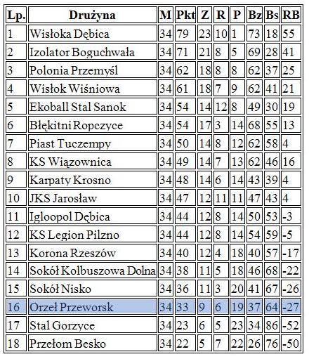 Do bezpiecznej 14 lokaty brakło nam jedynie lub aż 5 punktów. Punktów, które brakło nam w spotkaniach głównie wyjazdowych, które nie były naszą najlepszą stroną. Mało strzelaliśmy bramek, dużo traciliśmy, były wyjątki jak wysokie wygrane u siebie z Błękitnymi Ropczyce 3-0, JKS Jarosław 4-0, Stalą Gorzyce 3:0, Przełomem Besko 3:0 czy Sokołem Kolbuszowa Dolna 6-0. Widać więc, że drużyna umiała i na pewno umie grać dobrze lecz w większości spotkań zawodziła.