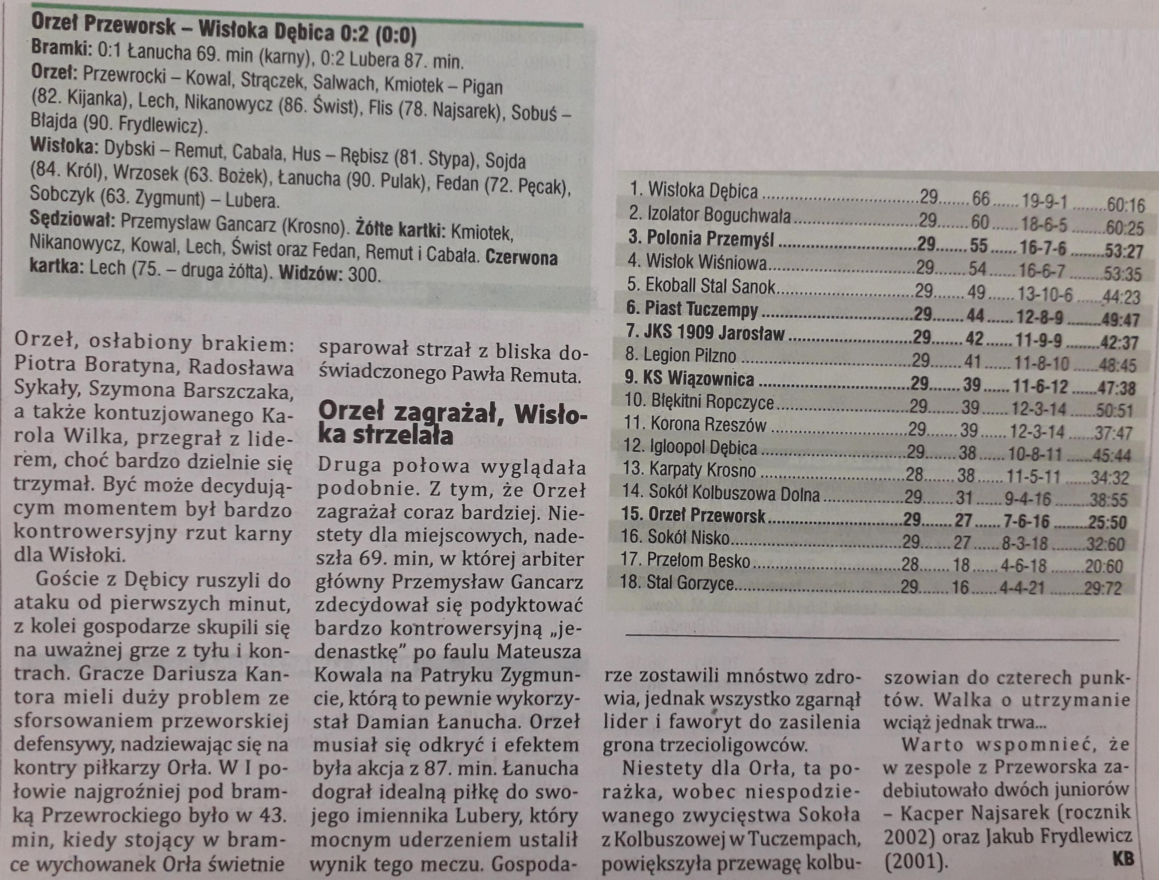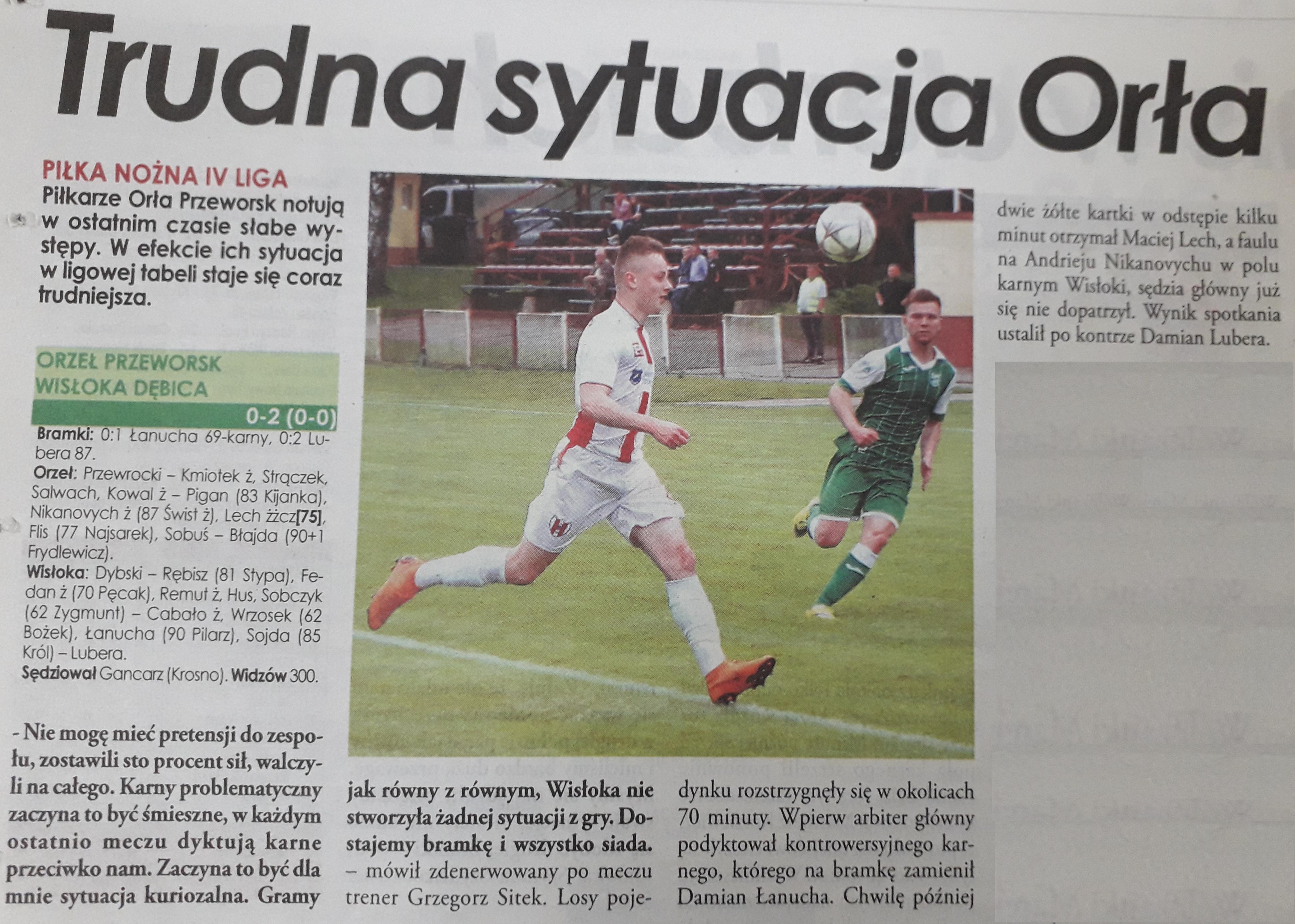 Piłka nożnaSeniorzy Prasa o meczu: Orzeł Przeworsk – Wisłoka Dębica 2019-05-23 samson Prasa o meczu: Orzeł Przeworsk – Wisłoka Dębica Życie Podkarpackie Portal informacyjny nowiny24.pl Gazeta Jarosławska 144