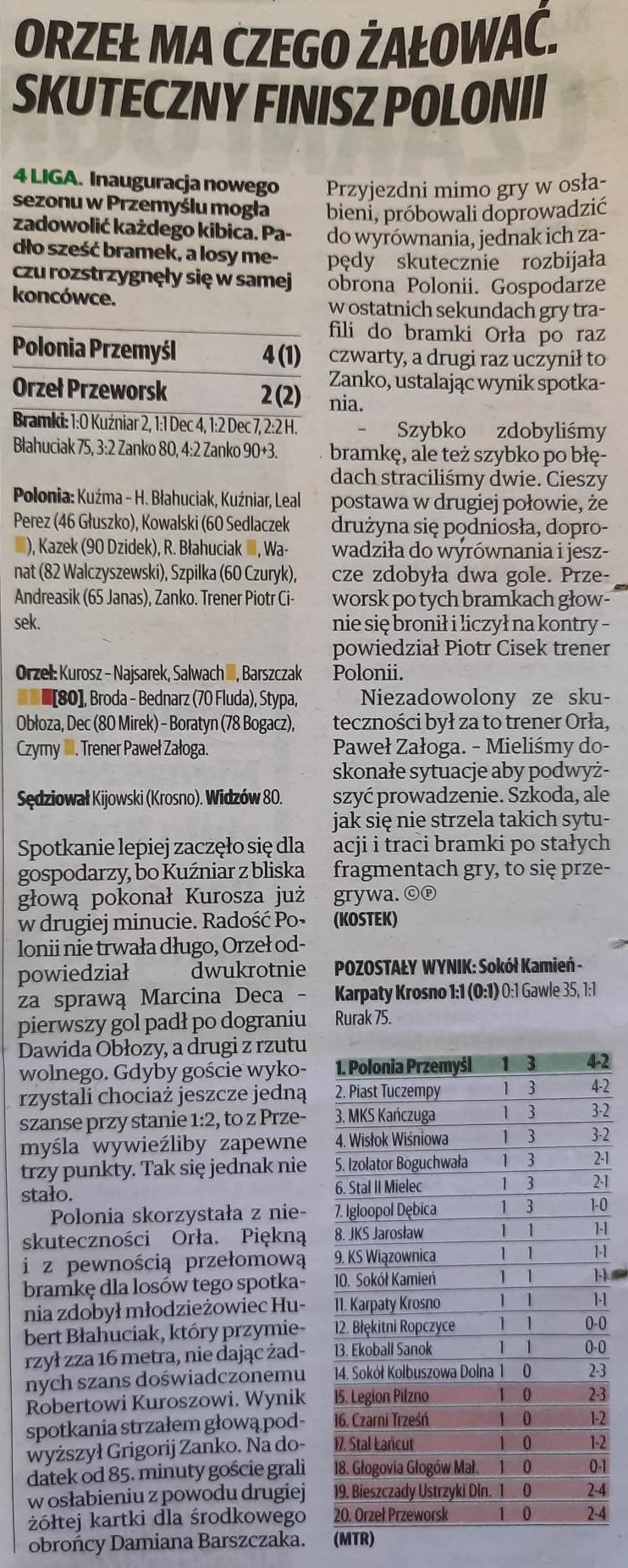 Prasa o meczu: Polonia Przemyśl – Orzeł Przeworsk: