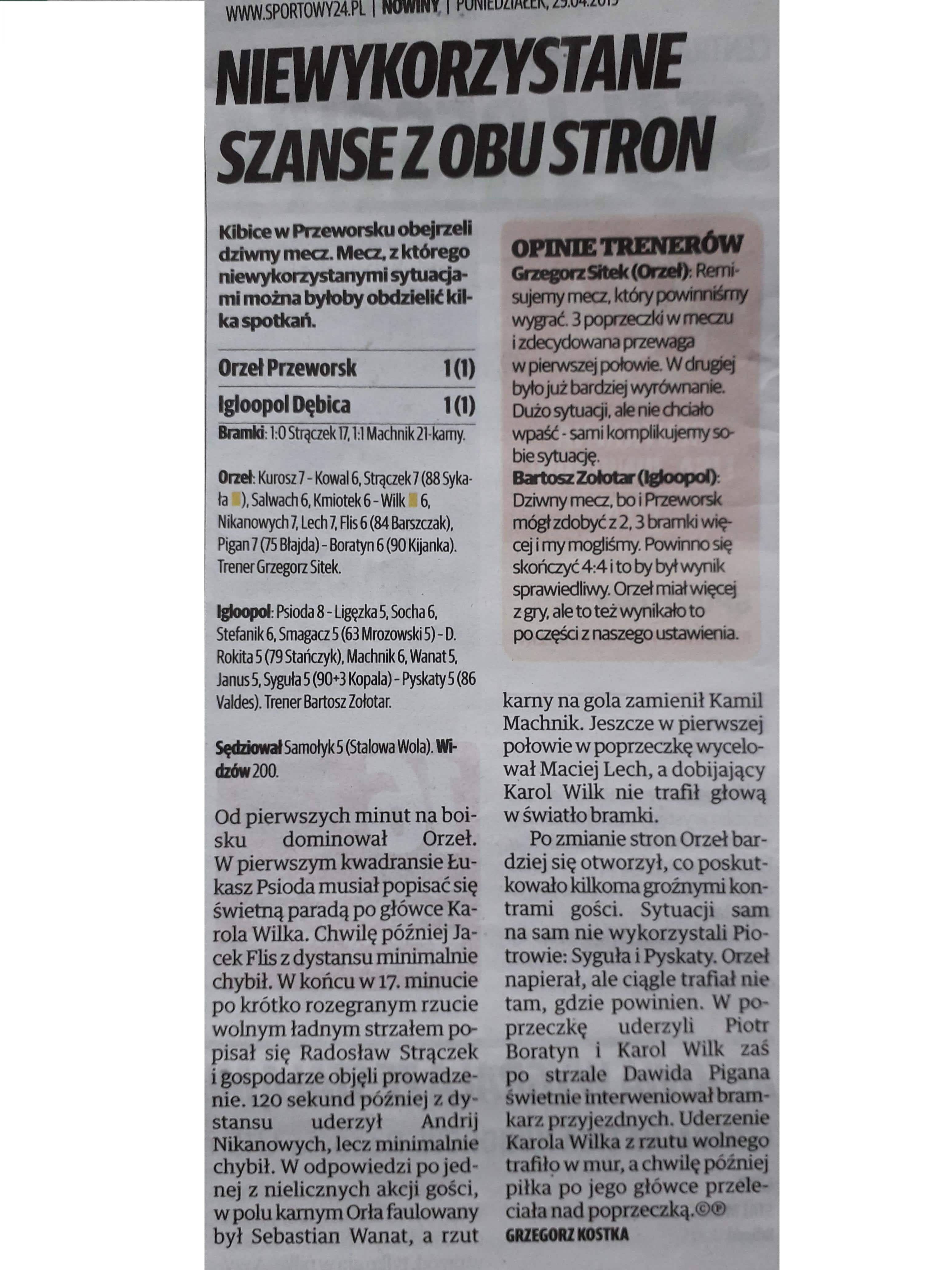 Piłka nożnaSeniorzy Przegląd prasy z meczu: Orzeł Przeworsk – Igloopol Dębica 2019-04-30 samson Przegląd prasy z meczu: Orzeł Przeworsk – Igloopol Dębica Portal informacyjny nowiny24.pl Życie Podkarpackie 158