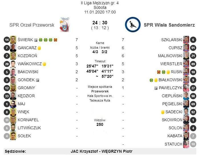 Przegrana z nowym liderem: SPR Orzeł Przeworsk – Wisła Sandomierz 24:30