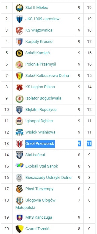 Orzeł: Kurosz – Kowal, Pikuła ż, Salwach, Barszczak – Bednarz, Flis, Obłoza (55 Stypa), Kruk – Bogacz (90 Barański), Boratyn (70 Czyrny). Trener Paweł Załoga.