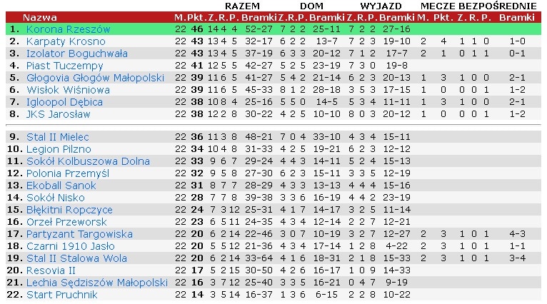 Tabela za 90minut.pl