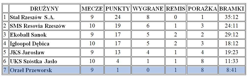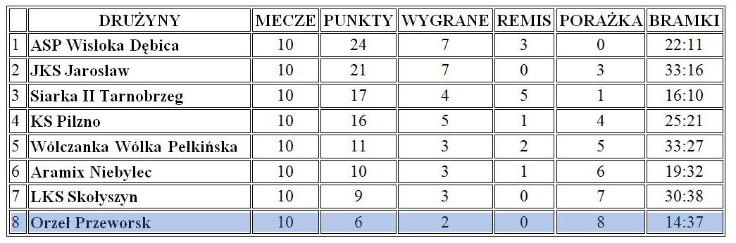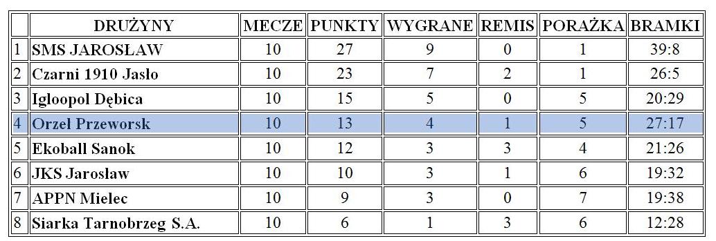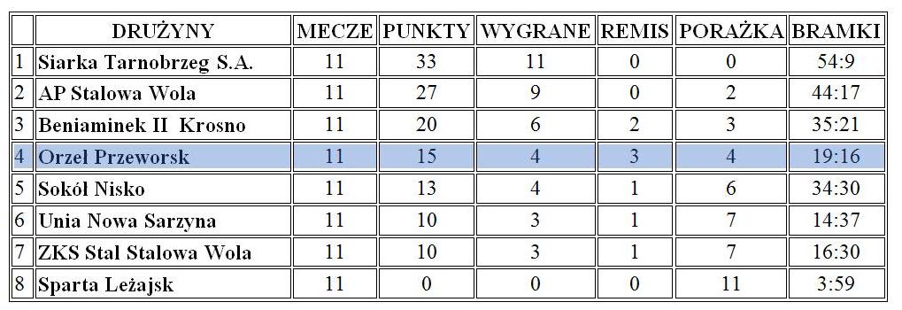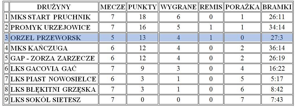 Aktualne tabele drużyn młodzieżowych MKS Orzeł Przeworsk – stan 15 października 2019 roku: