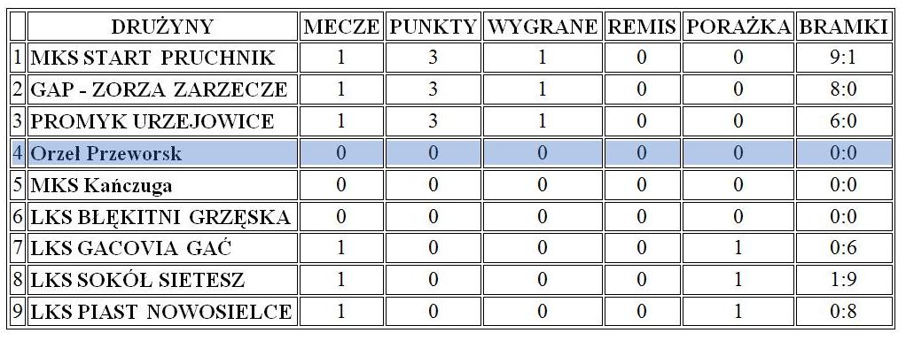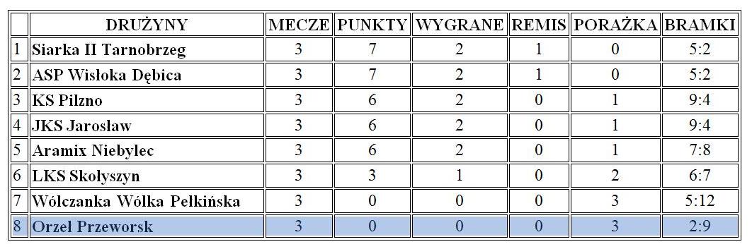 Przedstawiamy tabele drużyn młodzieżowych na dzień 29 sierpnia. Najtrudniejsza sytuacja jest w juniorach starszych, miejmy nadzieje, że jest to tylko zły początek. Juniorzy młodsi jeszcze nie rozegrali żadnej kolejki, a reszta drużyn gra ze zmiennym szczęściem, choć początek sezonu jest obiecujący. WALCZYĆ ORŁOWCY!!!