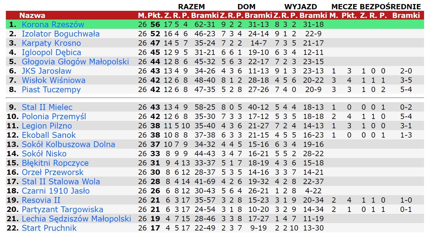 Orzeł: Kurosz – Najsarek, Salwach, Lech żż cz[82], Broda – Kruk (90+1 Pieczek), Flis ż, Obłoza, Dec (64 Wilk) – Czyrny (71 Boratyn), Bednarz (79 Szewczyk). Trener Paweł Załoga.