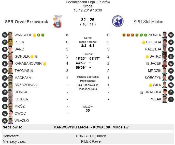Wygrana juniorów: SPR Orzeł Przeworsk – Stal Mielec 32:26