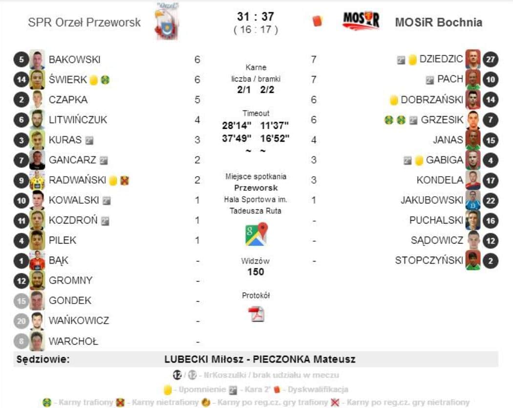 Orłowcy ponieśli trzecią porażkę w czwartym meczu sezonu. Znów podobnie jak w Sandomierzu o naszej porażce zadecydowała druga połowa meczu. W obu tych meczach prezentujemy się solidnie do przerwy, a później „odcina nam prąd”, rywale odskakują i brakuje czasu na odwrócenie losów spotkania. MOSiR Bochnia to solidny ligowiec, jednak była okazja go pokonać we własnej hali. W lidze jesteśmy zespołem, który najwięcej strzela, ale też najwięcej traci bramek. Można powiedzieć tam gdzie gra SPR Orzeł Przeworsk zawsze jest widowiskowo.