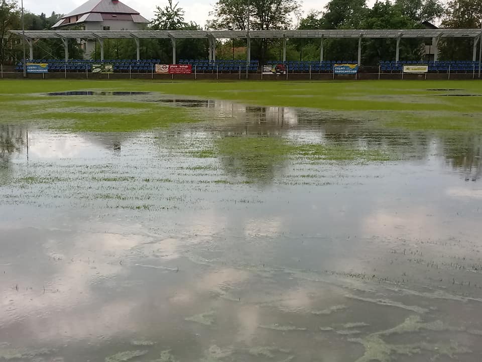 Miesiąc maj nie sprzyja słonecznej pogodzie, więcej jest deszczu niż słonecznej pogody. W związku z tym na kilku stadionach na Podkarpaciu mecze piłkarskie zostaną przełożone. Na zdjęciu głównym zalane boisko w Przeworsku z roku 1987.