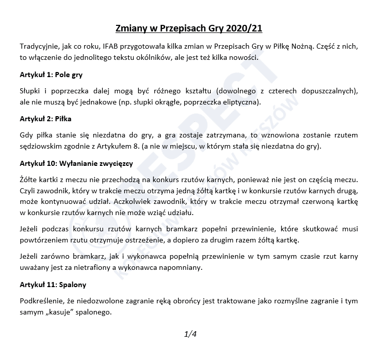 Na tę chwilę nie jest wciąż wiadome, kiedy wrócimy na boiska, ale IFAB przedstawiła ostateczne zmiany, jakie zajdą w Przepisach Gry w Piłkę Nożną w sezonie 2020/21. Większość z nich, to zmiany czysto redakcyjne oraz włączające teksty okólników i wytycznych do Przepisów Gry, ale jest kilka nowości.